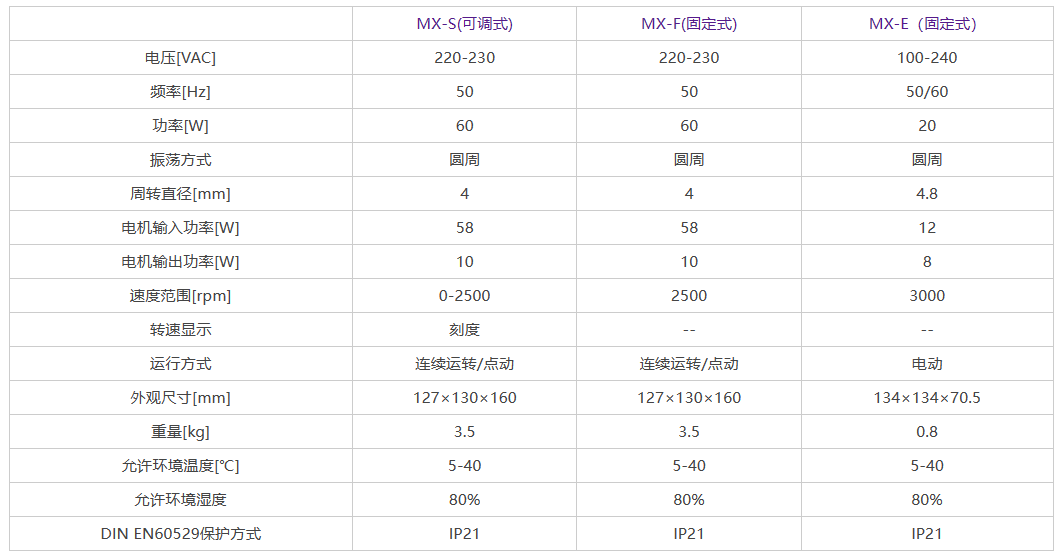 -MX-S速度范围广,0-2500rpm/min,电机无级调速