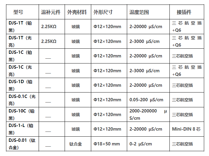 上海雷磁电导电极DJS-1T(铂黑)/DJS-1T(光亮)/DJS-1C(铂黑)/DJS-1C(光亮)/DJS-1D(铂黑)/DJS-0.1C(光亮)/DJS-10C(铂黑)/DJS-1-L(铂黑)/DJS-0.01(钛合金)